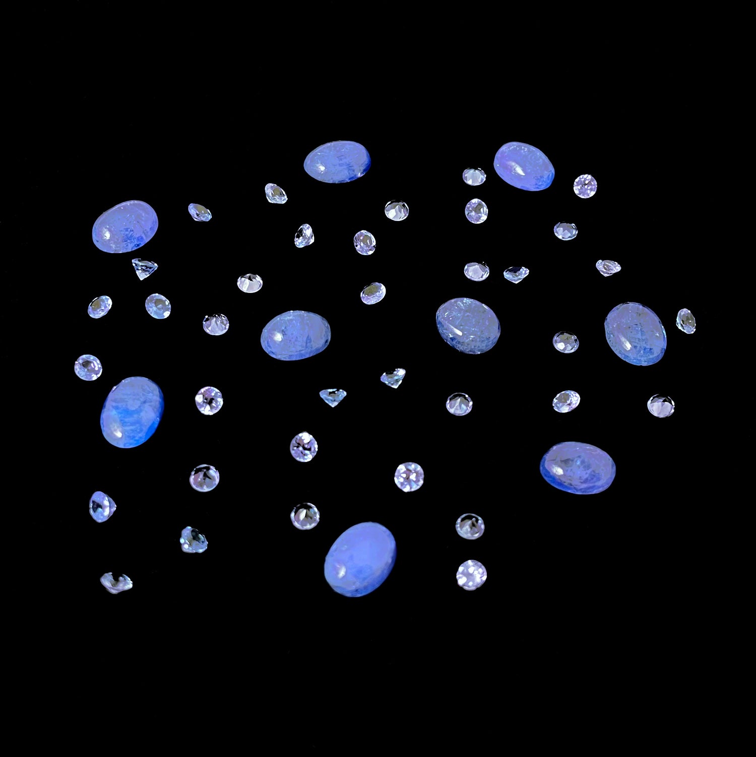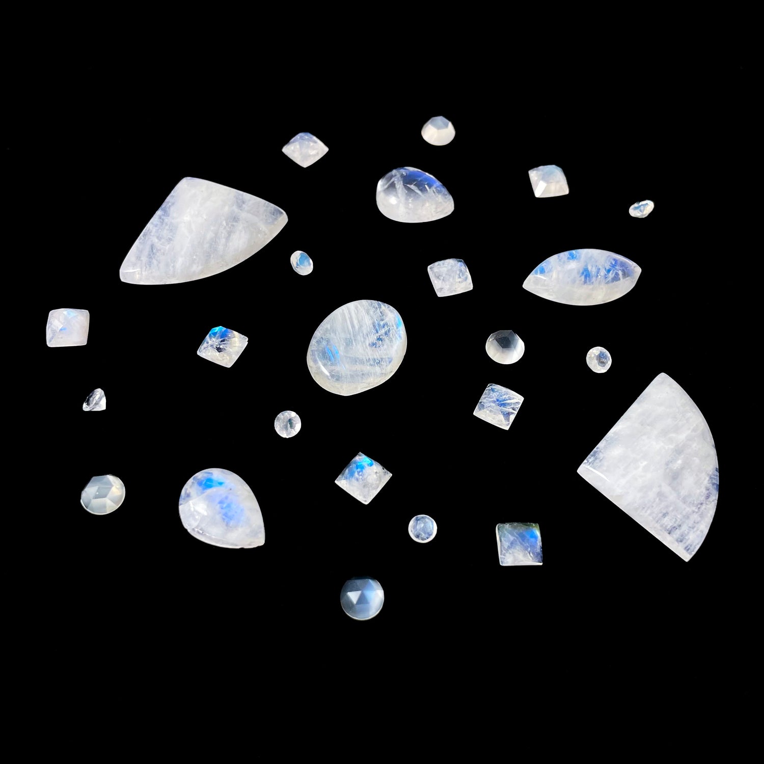 Moonstone bears its name from its blue color which reflects a silvery play of tones that appear like phases of the moon when light shines on it. It is composed of fine layers of feldspar and albite that make the stone look like it’s textured. Moonstone has long been associated with astral magic and mystery.