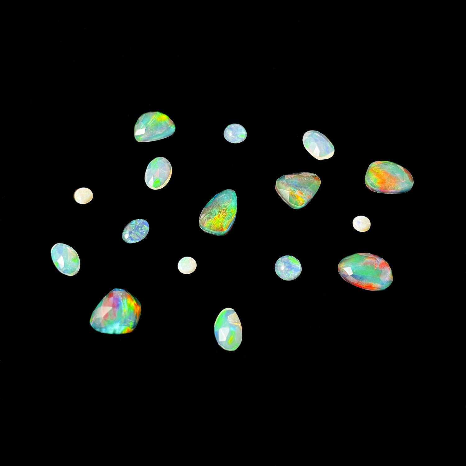 Opals are known for their fascinating color shifting. Most are white with iridescence, but they can be black or even transparent with flecks of red or yellow. Throughout history, they've been associated with lightning, fireworks, galaxies & volcanoes.