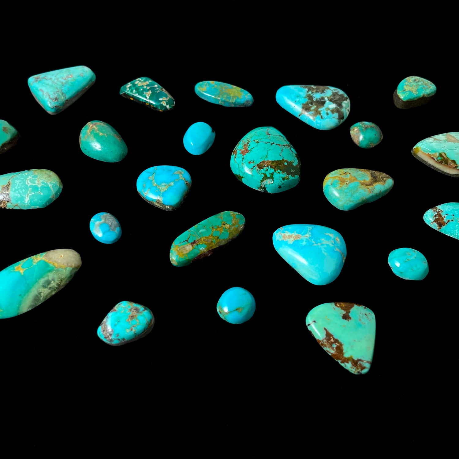Turquoise is a green-blue stone often found with veins for matrix running through it. Its importance spans time and space, cherished by Ancient Egyptians, Ancient Chinese artisans, Native Americans, and is the national gemstone of Tibet.