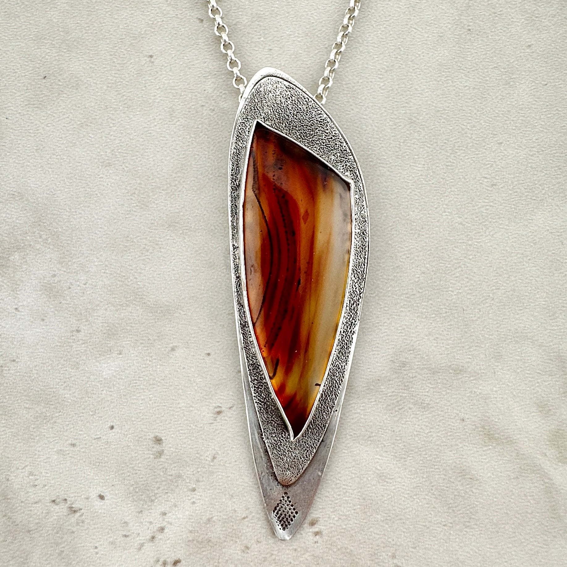 For your love of Montana, this unique pendant features a special Montana Agate cabochon which was cut by Montana Lapidary Artist, Merlin DeShaw.