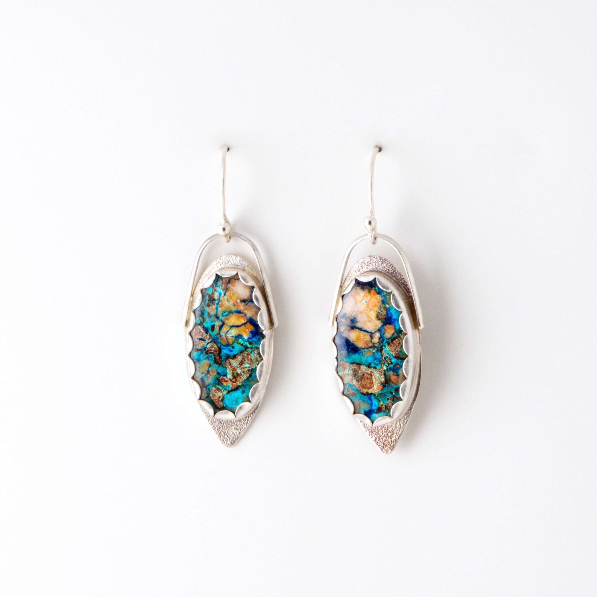 - Natural Chrysocolla with deep blue Azurite set in a fine silver scalloped bezel