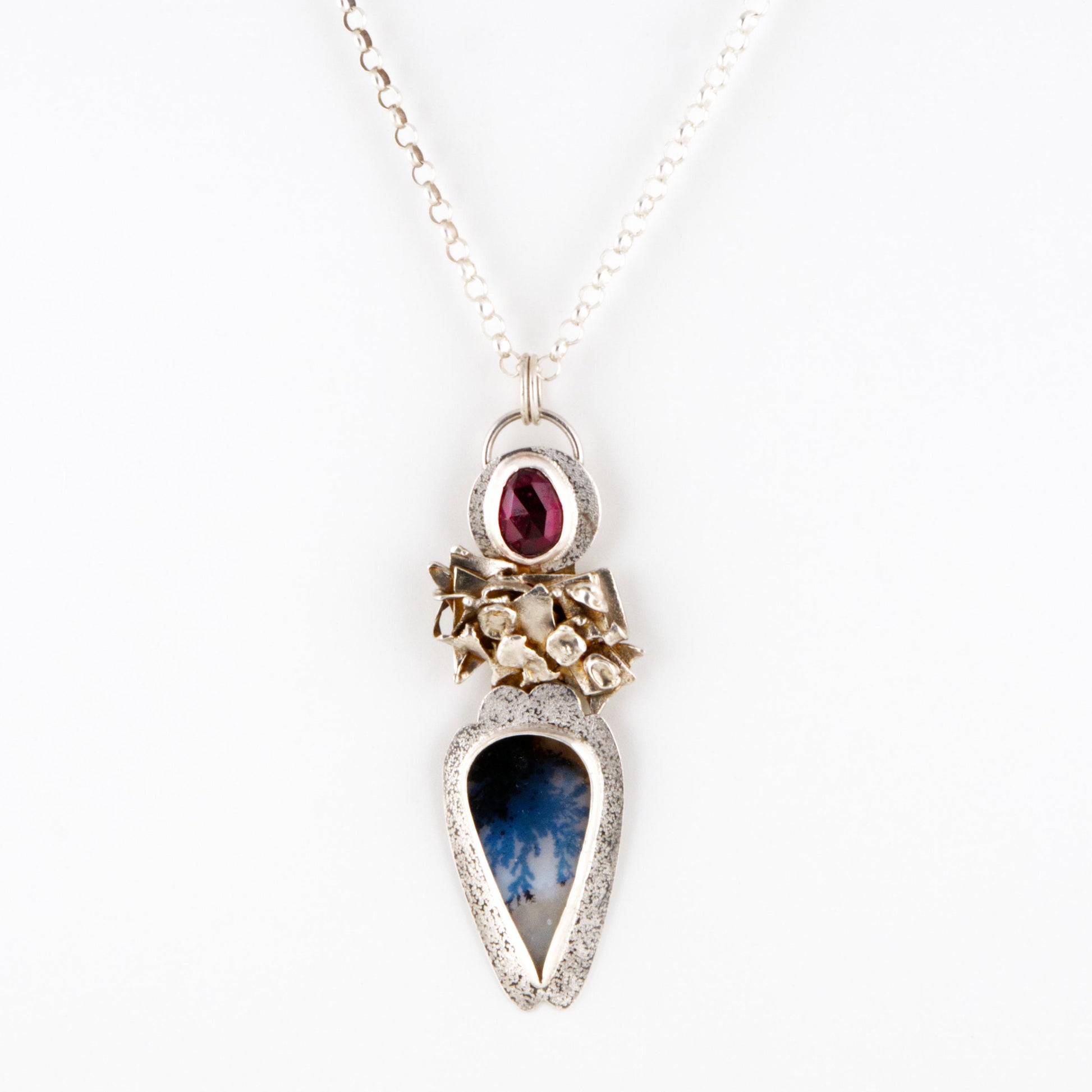 - Natural Dendritic Agate, Garnet & sterling silver