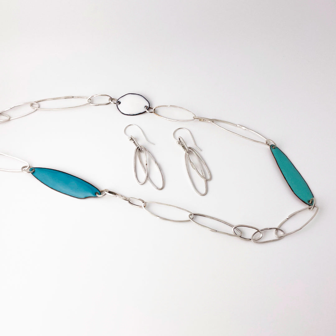 Gem Clips Handmade Sterling Chain & Enamel Elements Necklace #1