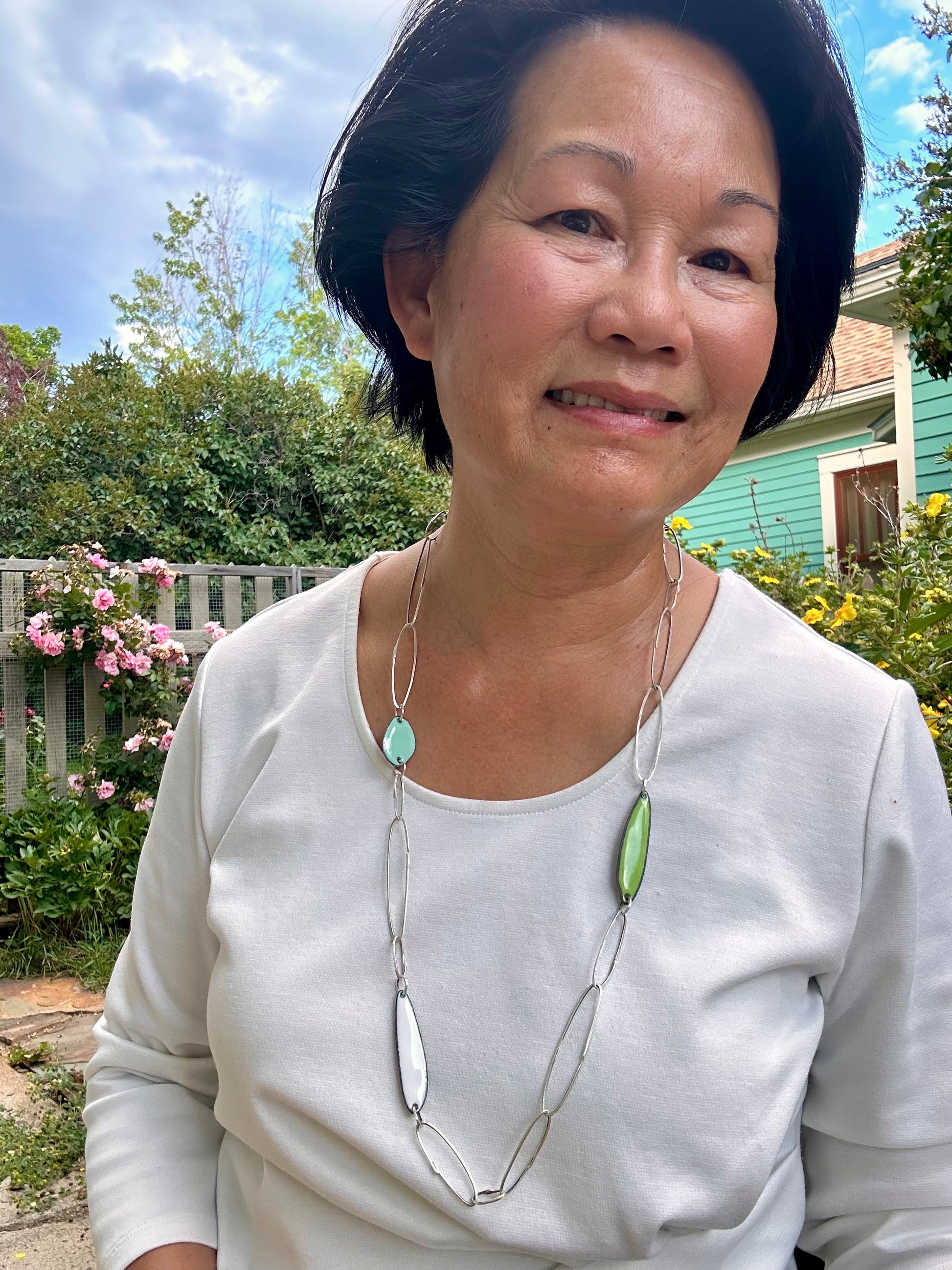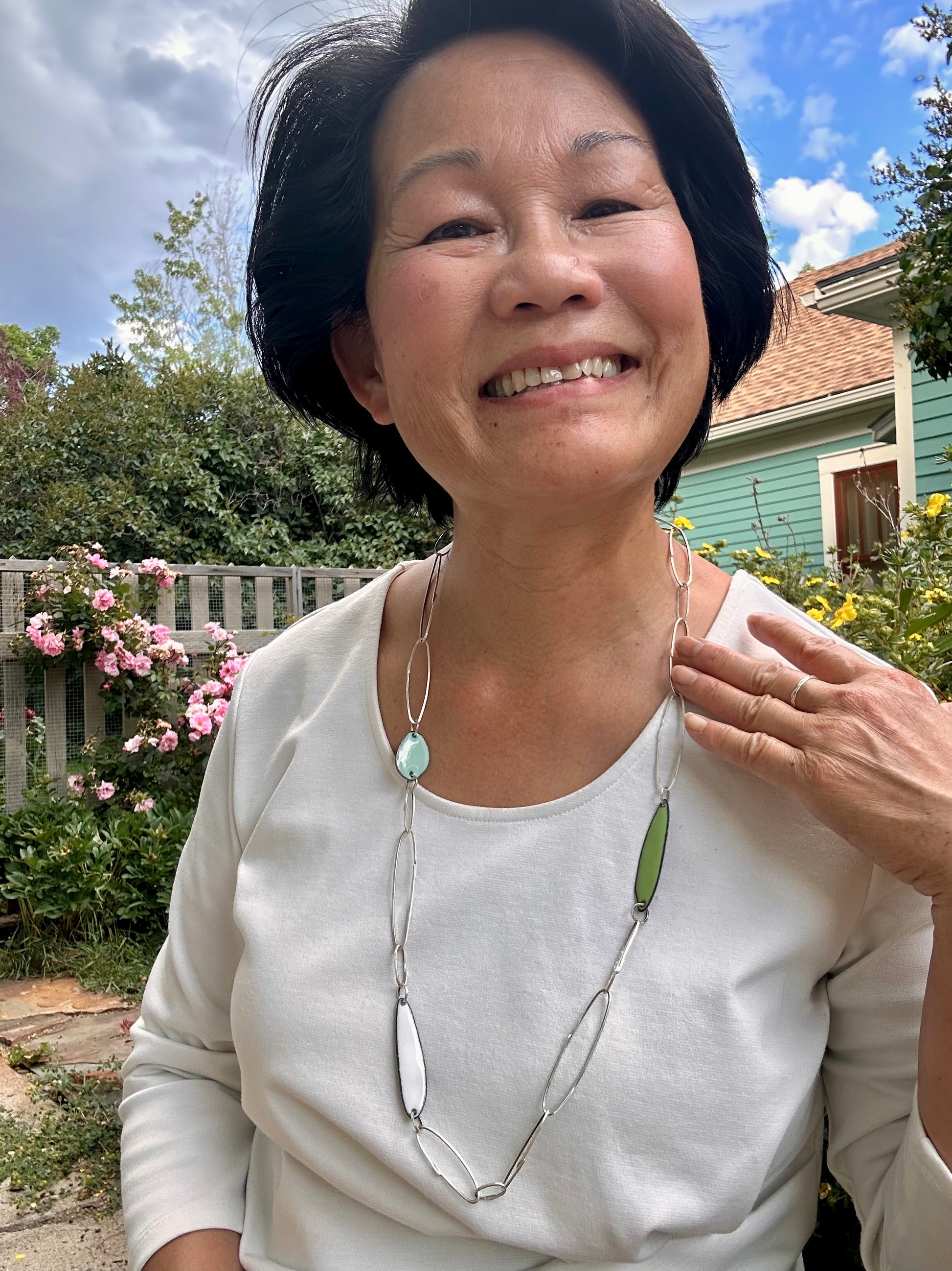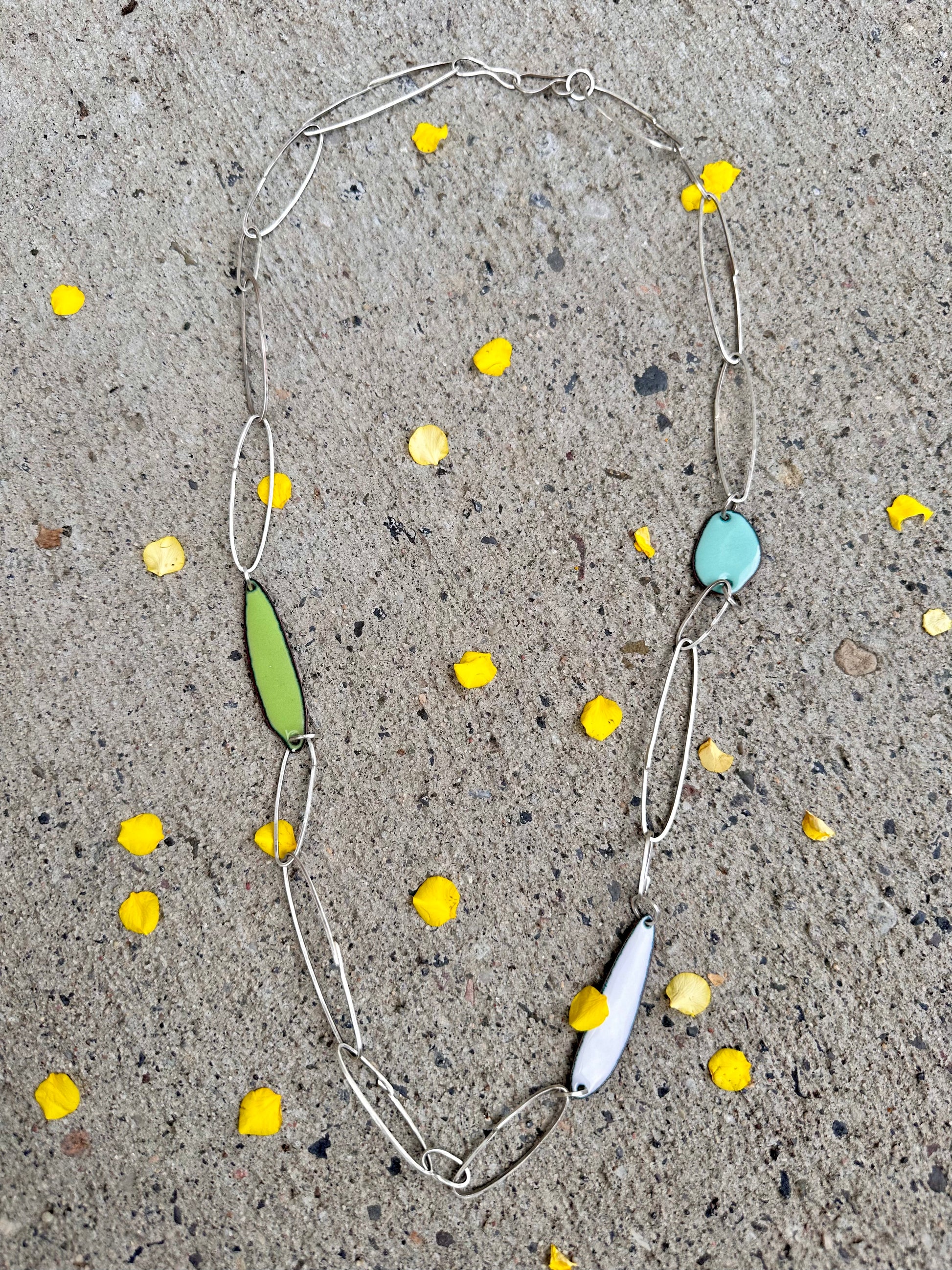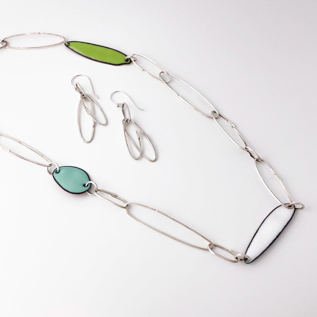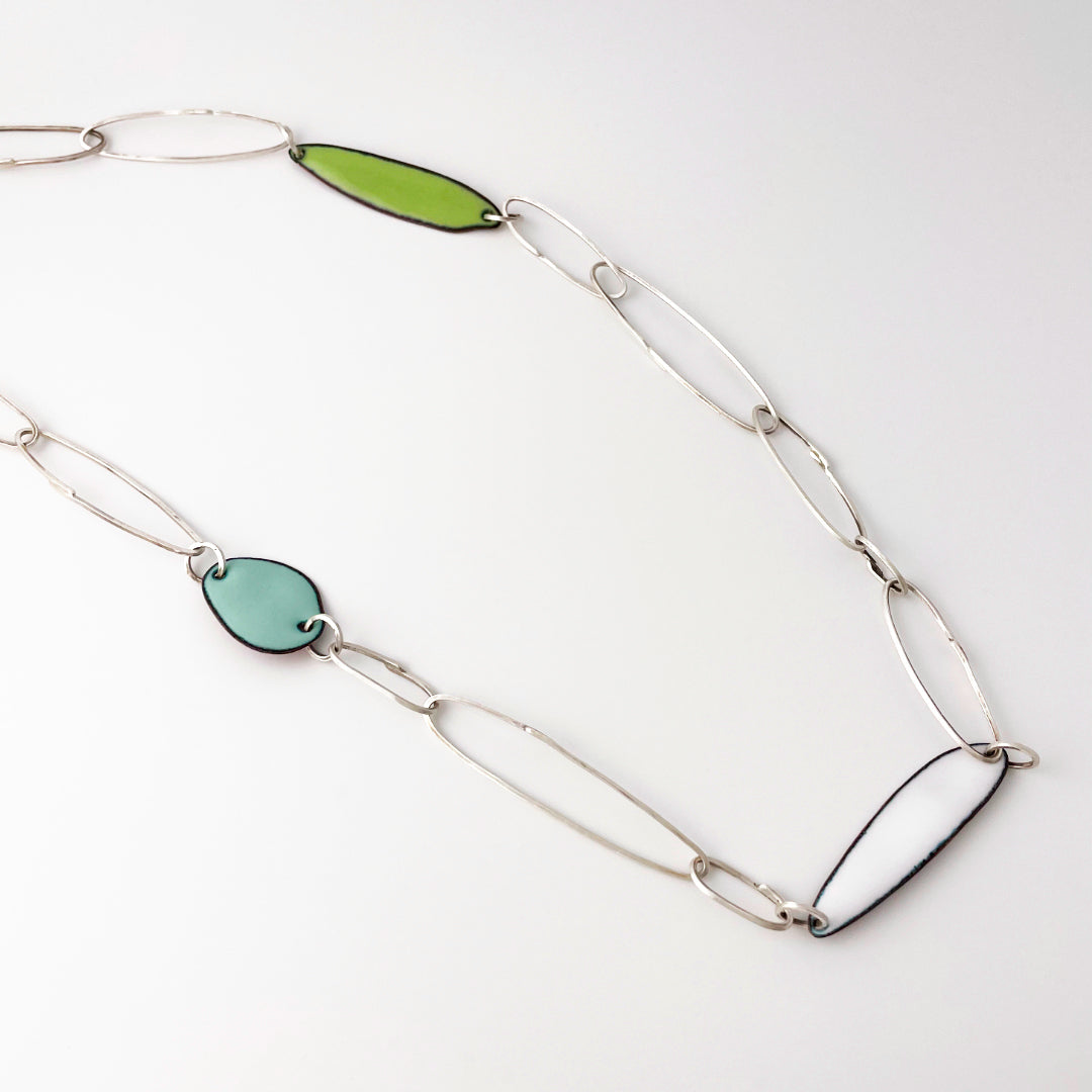 Gem Clips Handmade Sterling Chain & Enamel Elements Necklace #3