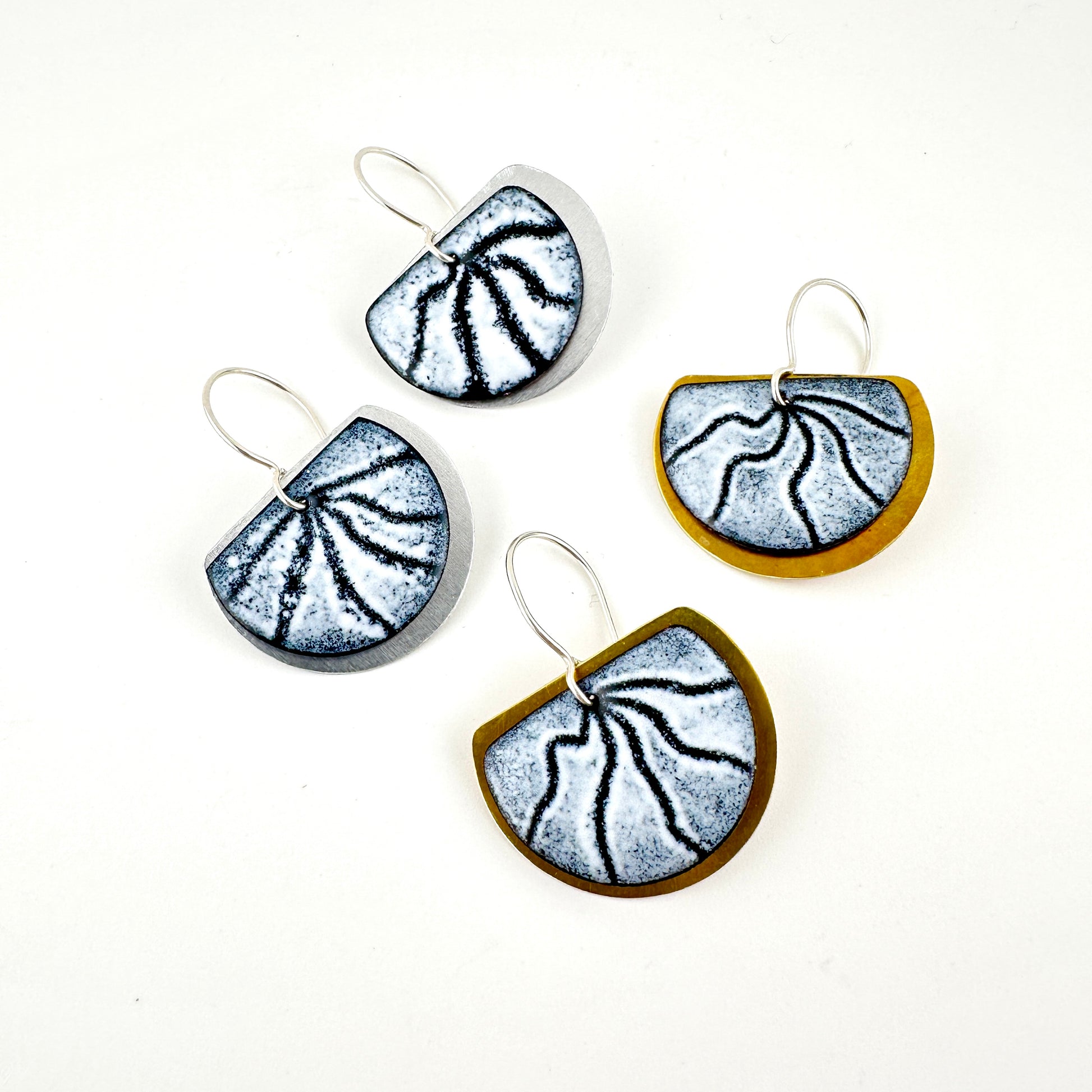 - Super light and easy to wear enameled copper earrings with organic and striking mark making inspired by the natural sun